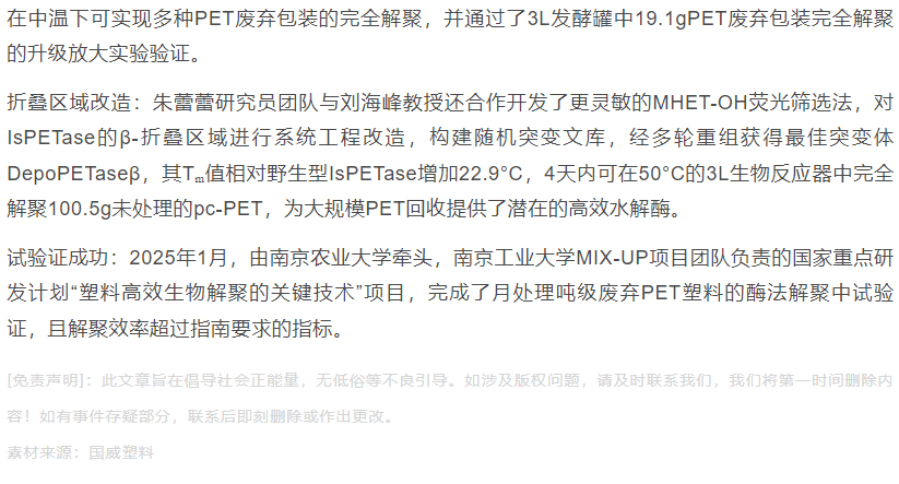 【行业资讯】15名专家共同研发,PET生物解聚获重大突破